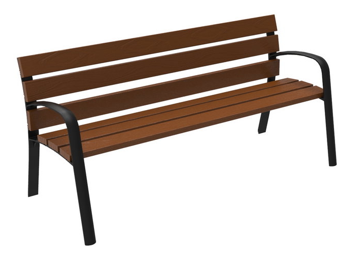 Banco tipo modo de soportes de fundición ductil con apoya-brazos y 6 listones de madera de guinea 1800x110x35