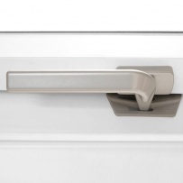 Manecilla inferior provista de 2 puntos de aireación (posición entreabierta). La situación de la manecilla permite una cómoda apertura, independientemente de la altura de la ventana. Diseño ergonómico, manecilla lacada.